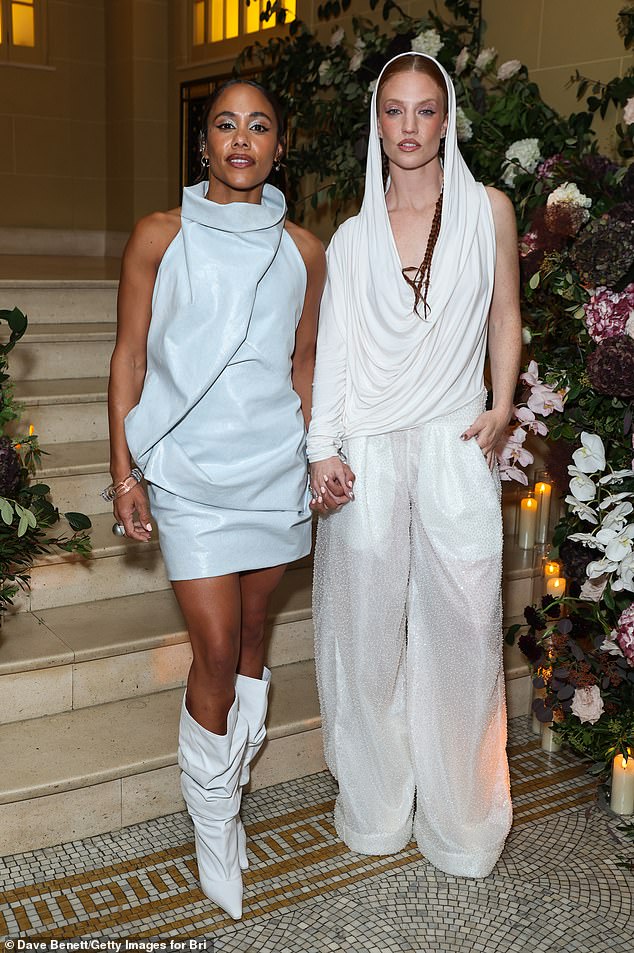 Alex Scott and Jess Glynne made a cosy appearance together as they left The British Vogue & Rabanne London Fashion Week party on Saturday night.