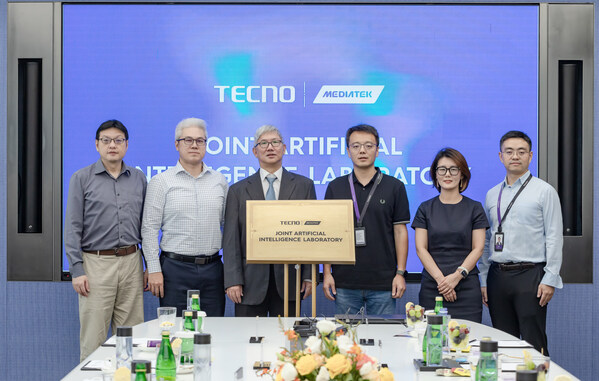 SHENZHEN,China,Sept. 19,2024 --Recently TECNO and MediaTek have officially unveiled their joint AI laboratory in Shenzhen,marking a new chapter in their collaboration in pushing the boundaries of innovations in AI. By integrating their respective leading technological resources in the field of artificial intelligence,the two companies aim to accelerate the application and popularization of AI technology in smart terminals,creating a smarter and more convenient mobile experience for users in global emerging markets. The launch event was attended by Mr. Shi Tuanwei,General Manager of the TECNO TEX AI Center,Ms. Liu Longzhi,Global Head of PR at TECNO,Dr. Lu Zhongli,Deputy General Manager of MediaTek's Computing and AI Technology Business Unit,and Mr. Li Shaoding,Associate Director of MediaTek's Wireless Product Software Development Department.