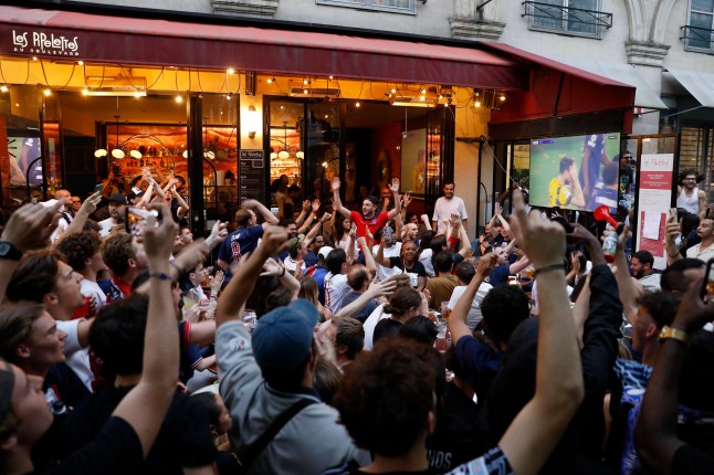 PSG supporters cheered the team’s first ever Champions League win on the streets of Paris (Picture: Antoine Gyori – Corbis/Corbis via Getty Images)