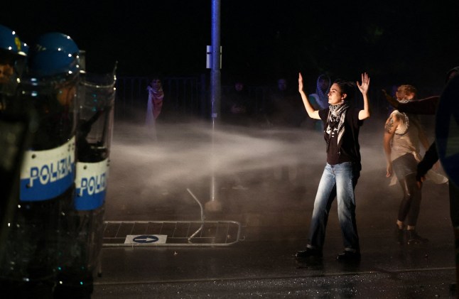 Water cannons were brought out and tear gas was fired in a bid to stop the escalation.