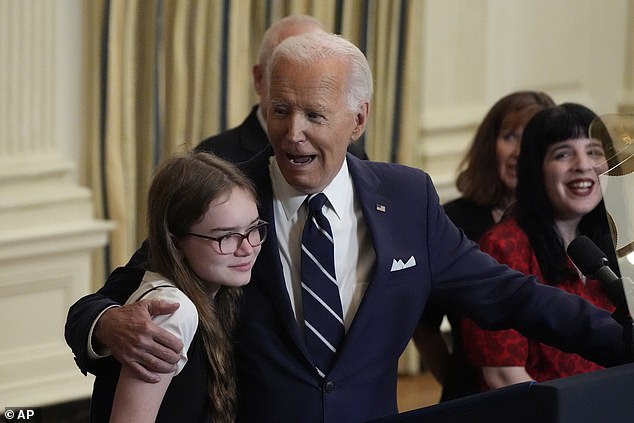 In footage of the moment,Biden tells the room 'Tomorrow is a big day,the 13th birthday of Miriam (Butorin),' who is the daughter of Alsu Kurmasheva,one of the hostages freed in a historic prisoner swap.
