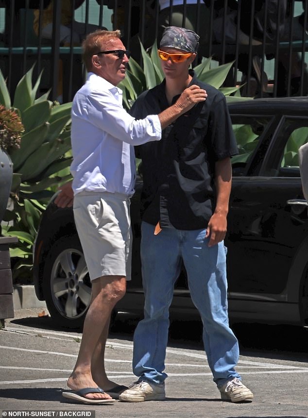 The 69-year-old Horizon star was pictured out in Summerland,California,as he leaned in for an affectionate hug with his 17-year-old son Cayden after they had lunch together.