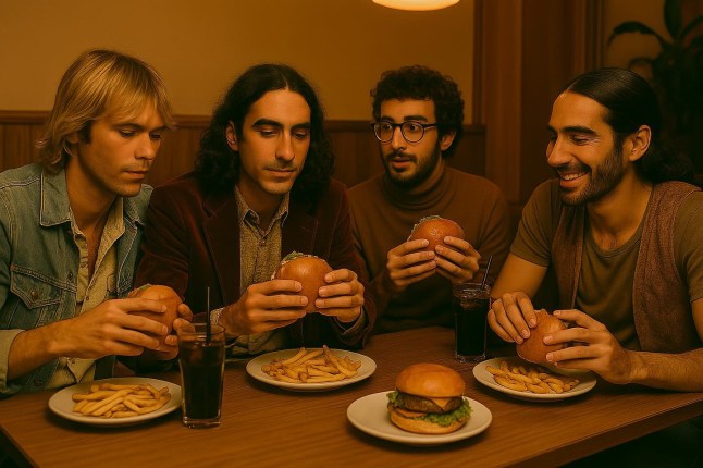 One of the AI images circulating of the band. Some asked why there was an extra burger,but a missing portion of chips (Picture: @thevelvetsundownband)
