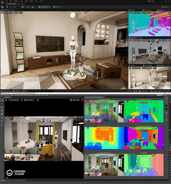 Coohom Cloud Interior 3D scene integrated with Unreal Engine and NVIDIA Isaac Sim