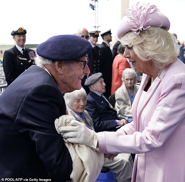 Charles and Camilla hosted four D-Day veterans at Buckingham Palace yesterday,hearing moving personal stories and seeing their poignant keepsakes.