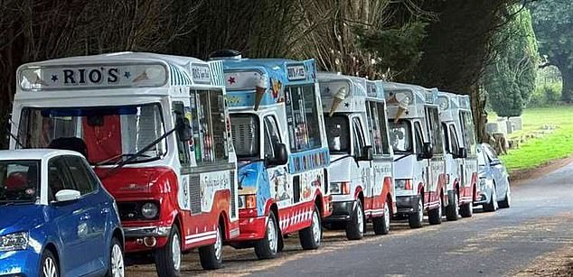 Ice cream vans lined the streets in Kent in tribute to an 'iconic' dairy business boss who had served the community for 70 years.