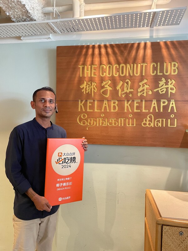 On behalf of Dianping,SpoonX presented a certificate to The Coconut Club for being featured on the 2024 'Must-Eat List' in Singapore.