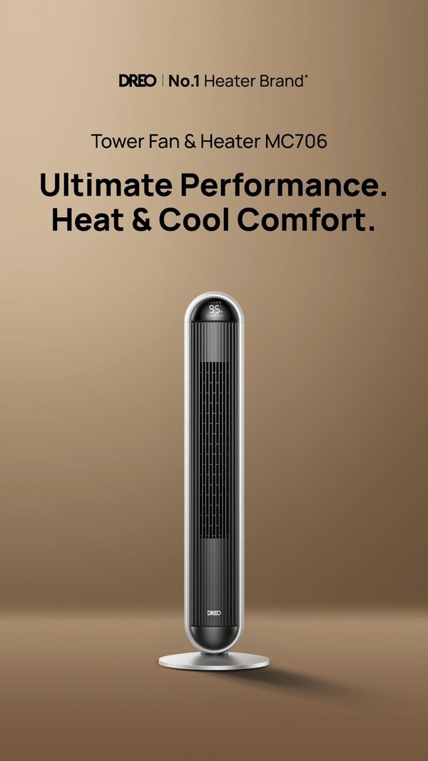 As DREO continues to push the boundaries of comfort and innovation,the MC706 2-in-1 Tower Fan & Heater will be available starting November 8—just in time for the Black Friday season. Shoppers can enjoy an exclusive 15% discount during the Black Friday campaign on dreo.com and Amazon,making it the perfect opportunity to experience DREO's most advanced year-round climate solution at an exceptional value.