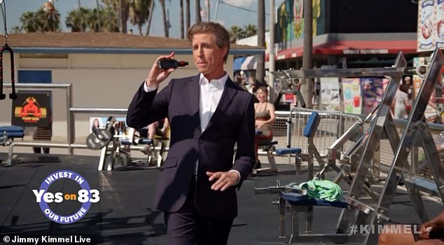 However,it's on lefty darling Jimmy Kimmel's show where the impression has caught the notice of viewers and even the governor himself.