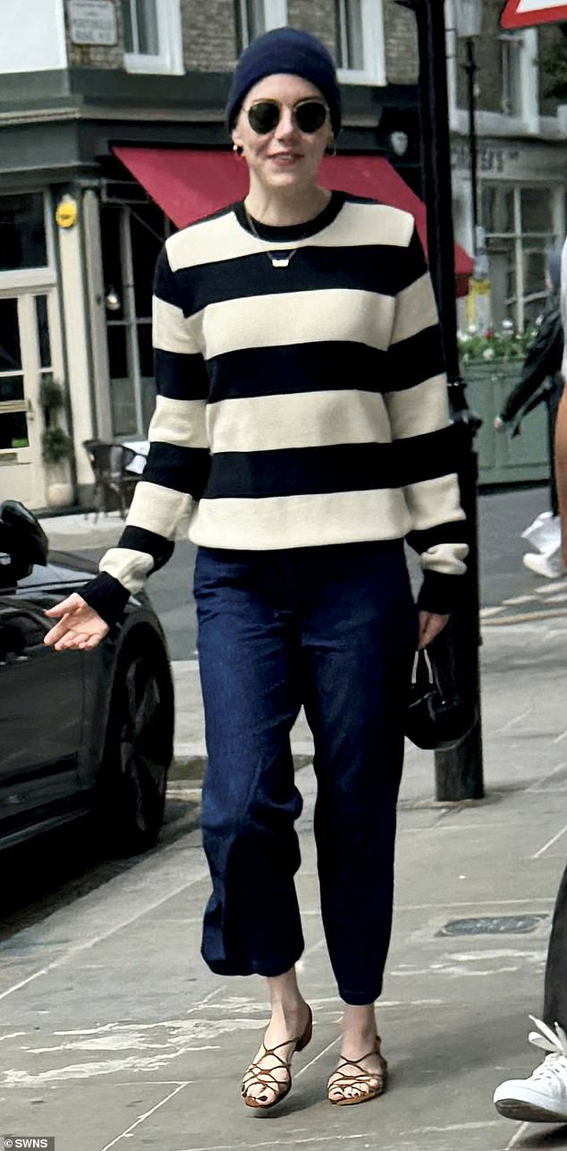 The American actress,35,who played the iconic Disney character Cruella de Vil in 2021 blockbuster,was effortlessly chic on the outing in a stripped sweater and jeans.