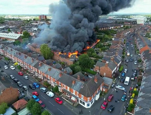 A spokesman for Cheshire Police said: 'Cheshire Fire and rescue are currently dealing with a large commercial building fire in Crewe.