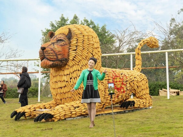 The Chengdu Giant Corn Art Festival 2024,which will run until Dec 15,is underway in the Huawu Renjian Scenic Area in Xinjin district of Chengdu,Sichuan province.