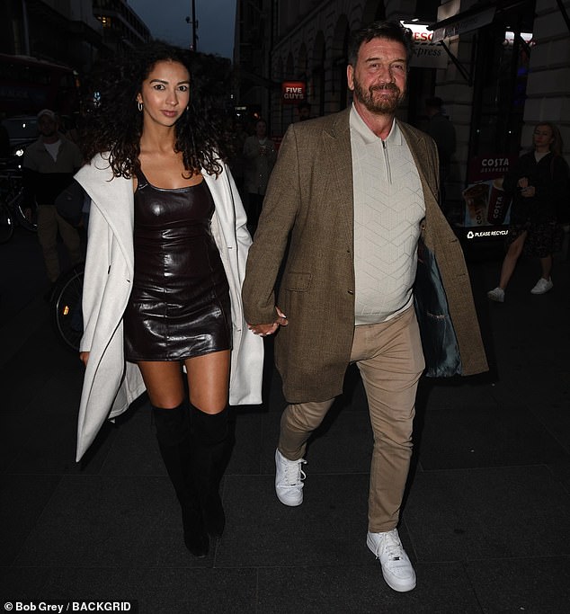 Nick,61,appeared to be in high spirits as he walked hand-in-hand with 34-year old Katie,who will no doubt be cheering him on when he takes to the dancefloor on Saturday evening.