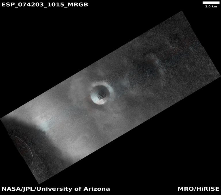 Science aside, the HiRise crater snapshot showcases the haunting beauty of Mars. This would be a great time to put on The Rise and Fall of Ziggy Stardust and the Spiders from Mars and stare into a crater from a planet far away.